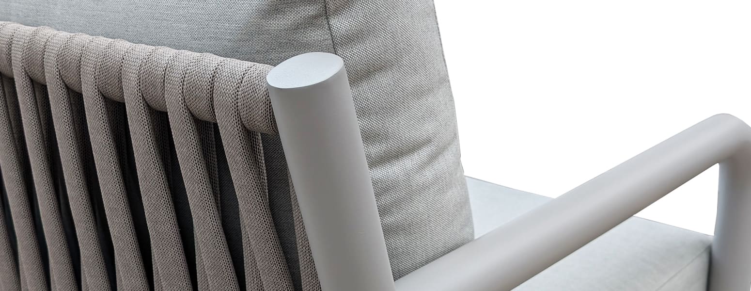 Bring warmth and contemporary style to your garden with durable outdoor performance of DUBAI Collection. Elegant olefin rope detailing adds unique styling, while thick showerproof cushions provide supportive relaxation.