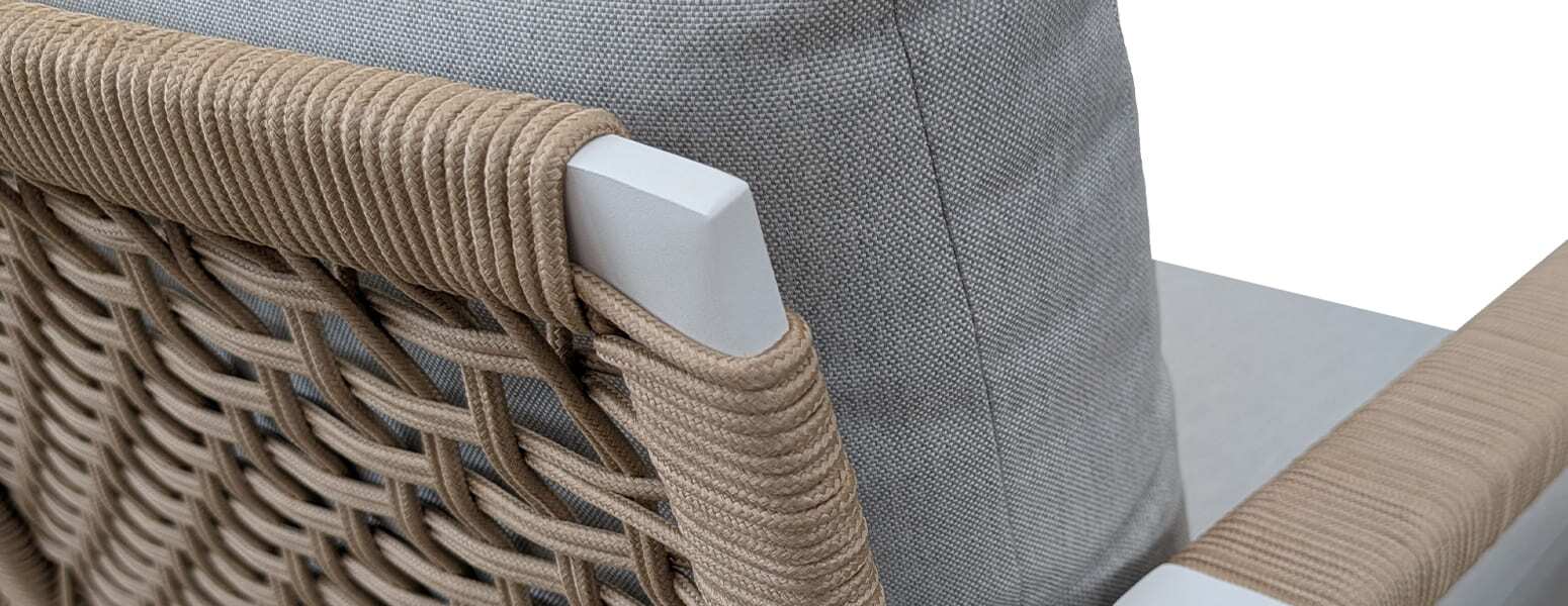 Bespoke styles and intricate detailing delivered with strong and weatherproof Olefin Rope. Its highly durable synthetic fibre offers excellent resistance to staining, mildew, abrasion, and sunlight.