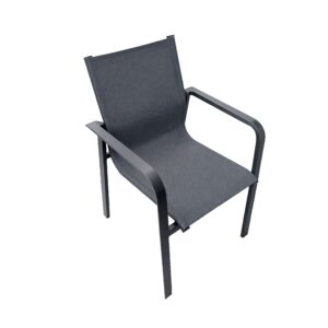 The RONA Dining Set combines durable materials with a clean, contemporary design. Its square table and four stackable armchairs feature rust-resistant powder-coated aluminium frames in Anthracite Grey. Breathable Textilene seating ensures comfort, while the ceramic glass tabletop resists scratches, heat, and UV. Stylish yet practical, it’s built for easy maintenance and reliable outdoor dining in any garden or patio setting.