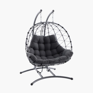 Blending contemporary style with exceptional comfort, this anthracite double hanging chair features a sturdy powder-coated steel frame, elegant rope weave and a plush, weather-resistant cushion. Designed to be extremely snug and inviting, it creates a peaceful retreat on any garden or balcony, perfect for unwinding, reading, or enjoying quiet moments outdoors in complete relaxation with friends and family.