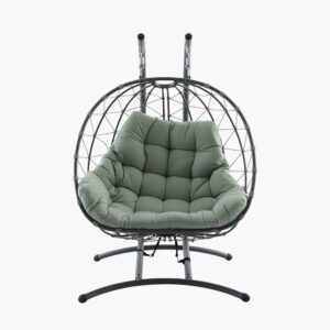 Blending contemporary style with exceptional comfort, this green double hanging chair features a sturdy powder-coated steel frame, elegant rope weave and a plush, weather-resistant cushion. Designed to be extremely snug and inviting, it creates a peaceful retreat on any garden or balcony, perfect for unwinding, reading, or enjoying quiet moments outdoors in complete relaxation with friends and family.