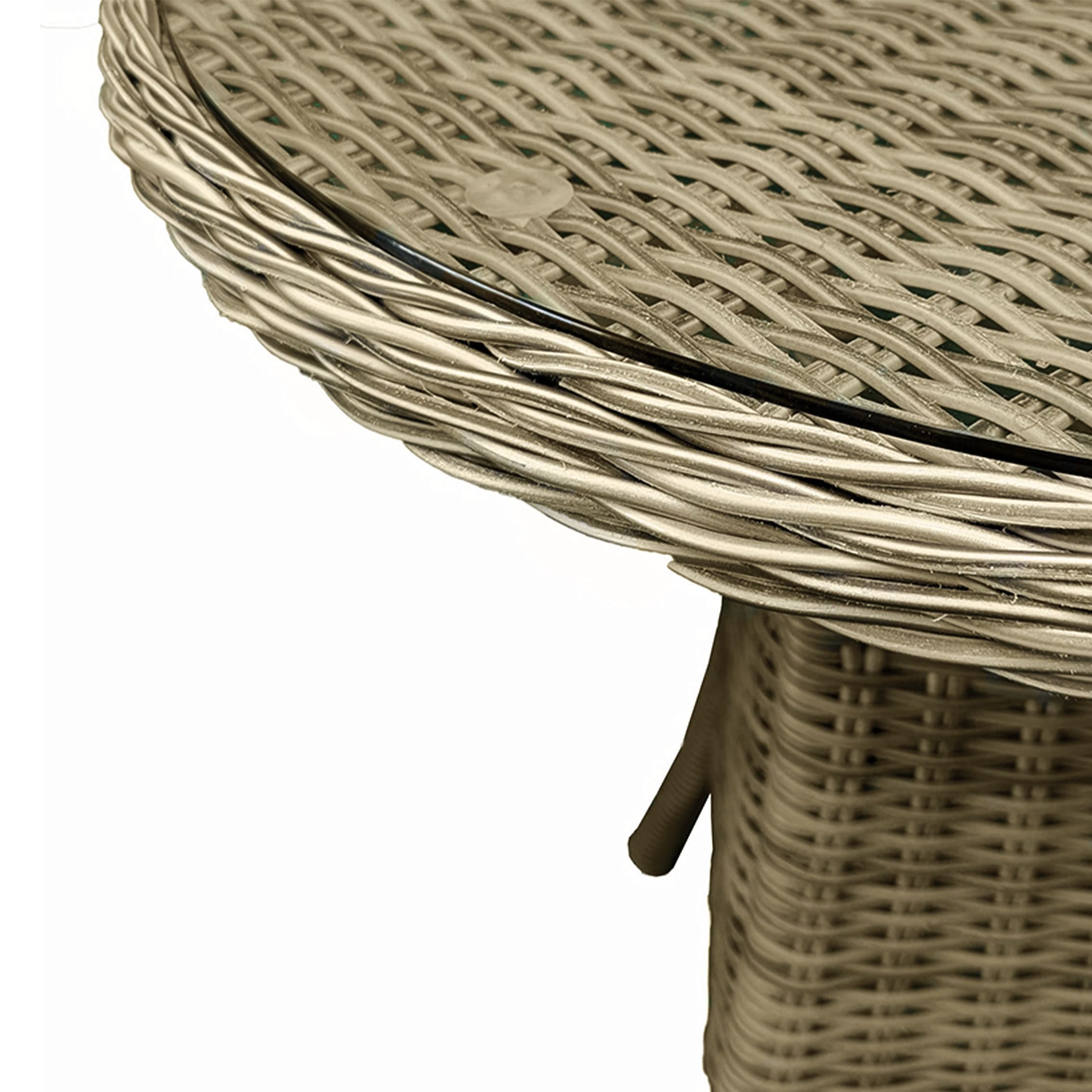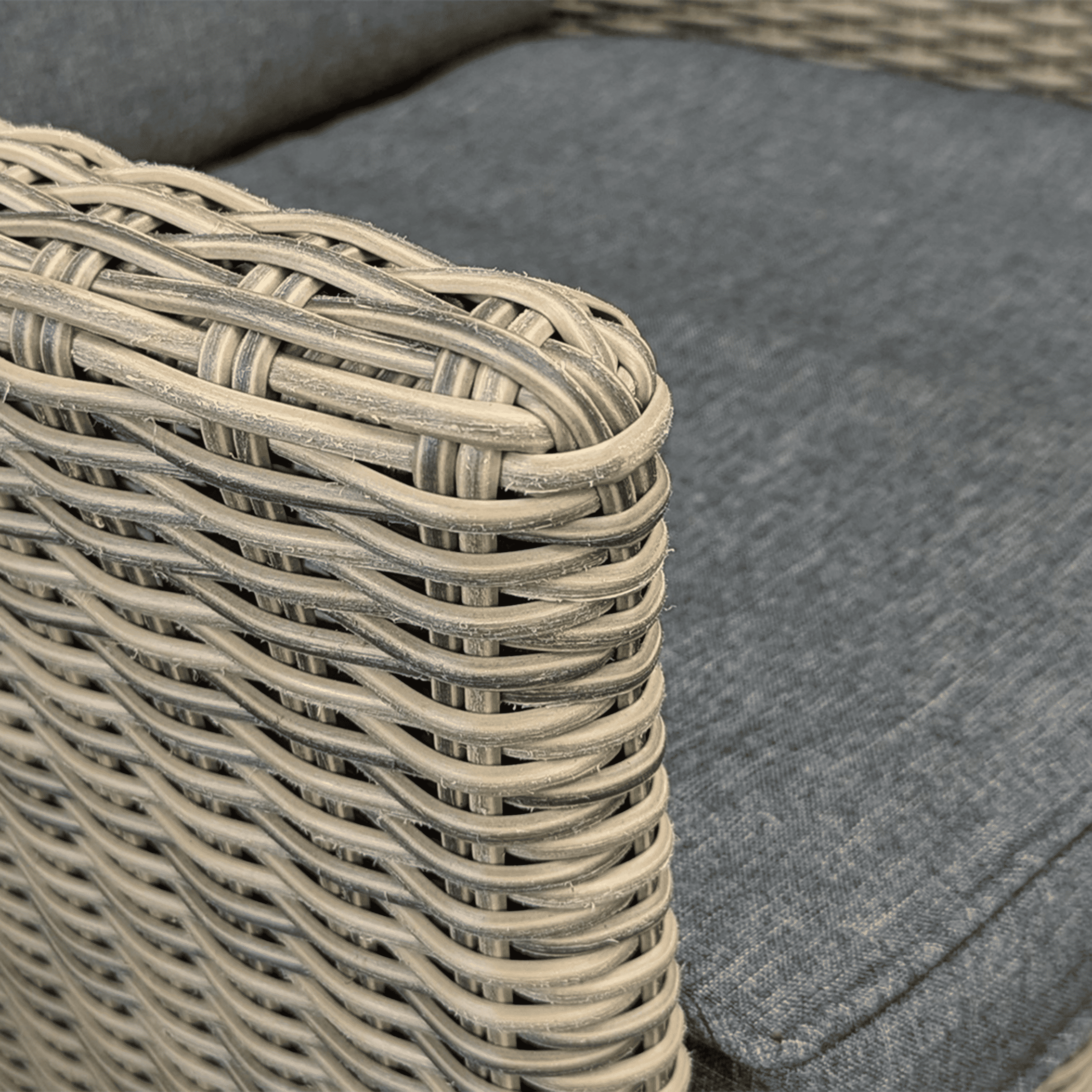 Wrapped in premium synthetic all-weather rattan, the set delivers the classic woven look with the resilience needed from sunshine, rain and frost. The carefully selected natural colour enhances its premium appearance while offering a warm, inviting tone that is pleasant to the touch and blends effortlessly into gardens, patios, and conservatories.