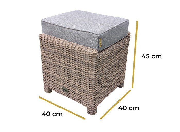 Our AMY Footstool offers elegant and classic rattan looks with outstanding comfort. Compact and practical design suits any location, be it a garden, patio or balcony and you can enjoy outdoors all year around with all weather materials. Use it to compliment existing bistro, lounge or sofa sets. It’s not just the appearance and feel of our high-quality synthetic round rattan weave, but with the powder-coated aluminium frame, you can forget about the worries of rust leaks and frame deterioration. Extra thick cushions are fitted with memory foam, yet offer cloud like soft seating experience. Cushion covers are completely Showerproof, UV-Light resistant and machine-washable