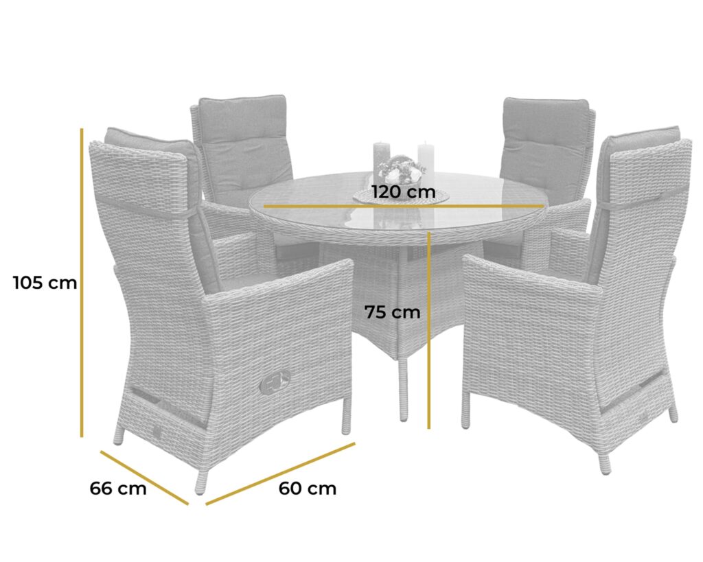 Combining style, comfort, and practicality, the ABBEY Rattan Dining Set is a versatile and elegant solution for anyone seeking premium outdoor dining with the added luxury of reclining comfort.