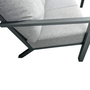 Despite its compact footprint, comfort is never compromised. Sink into deep, supportive cushions crafted for everyday relaxation. Upholstered in a soft-touch, shower-resistant fabric, the cushions are designed for outdoor living and feature removable, machine-washable covers for easy care and lasting freshness.