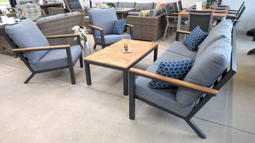The LILIS Sofa Set is crafted to elevate your outdoor living with durability, comfort, and understated style. Its powder-coated aluminium frame forms the backbone of the design — lightweight yet exceptionally strong, fully weather-resistant, and naturally rust-free. This ensures the set maintains its sleek appearance season after season, even in unpredictable British weather.