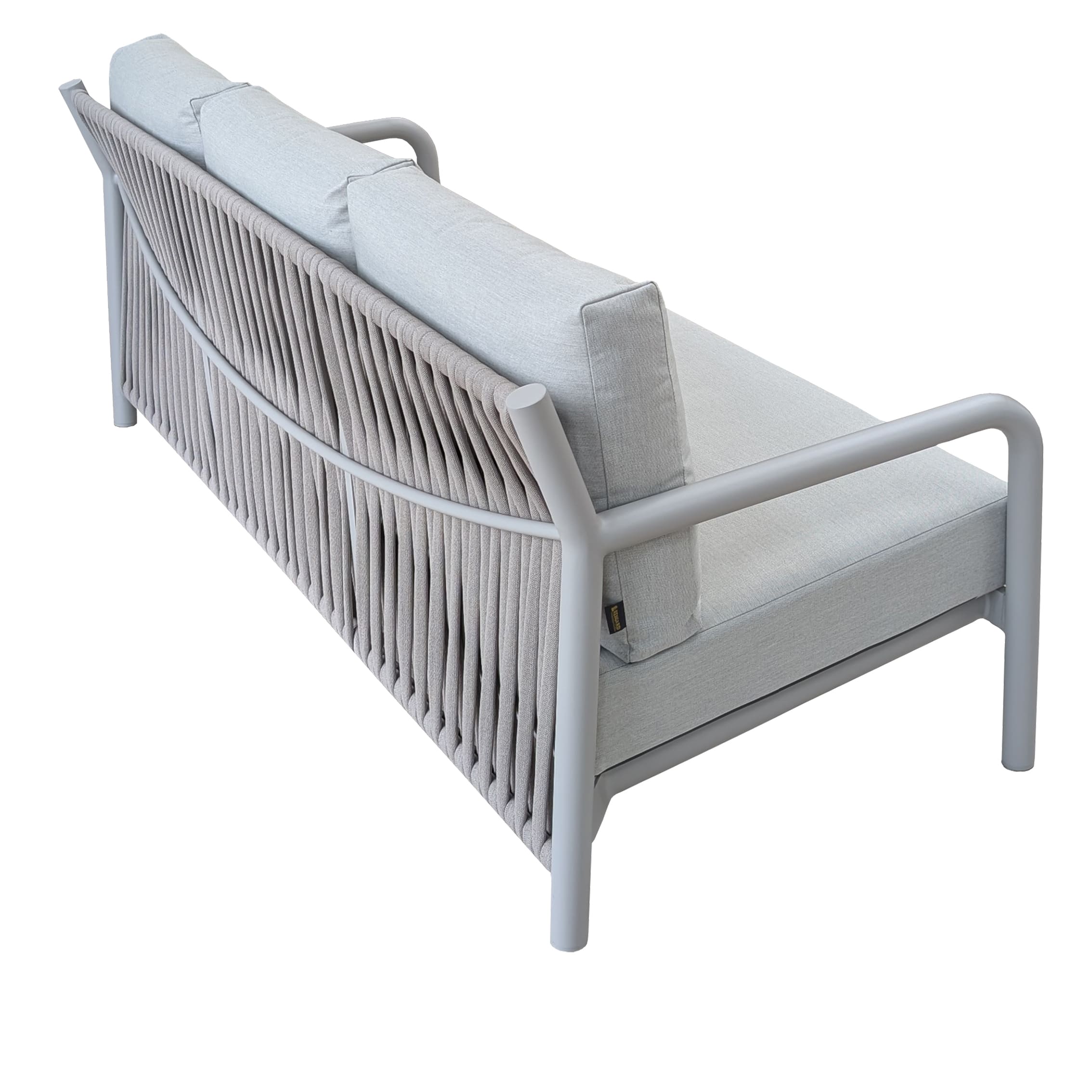 Completing the design, the set includes two split-level, separate round aluminium coffee tables, adding flexibility and architectural interest. With its sculptural curves, bold rope detailing and luxurious comfort, the MIAMI Sofa Set transforms any outdoor space into a chic, contemporary retreat with standout personality.