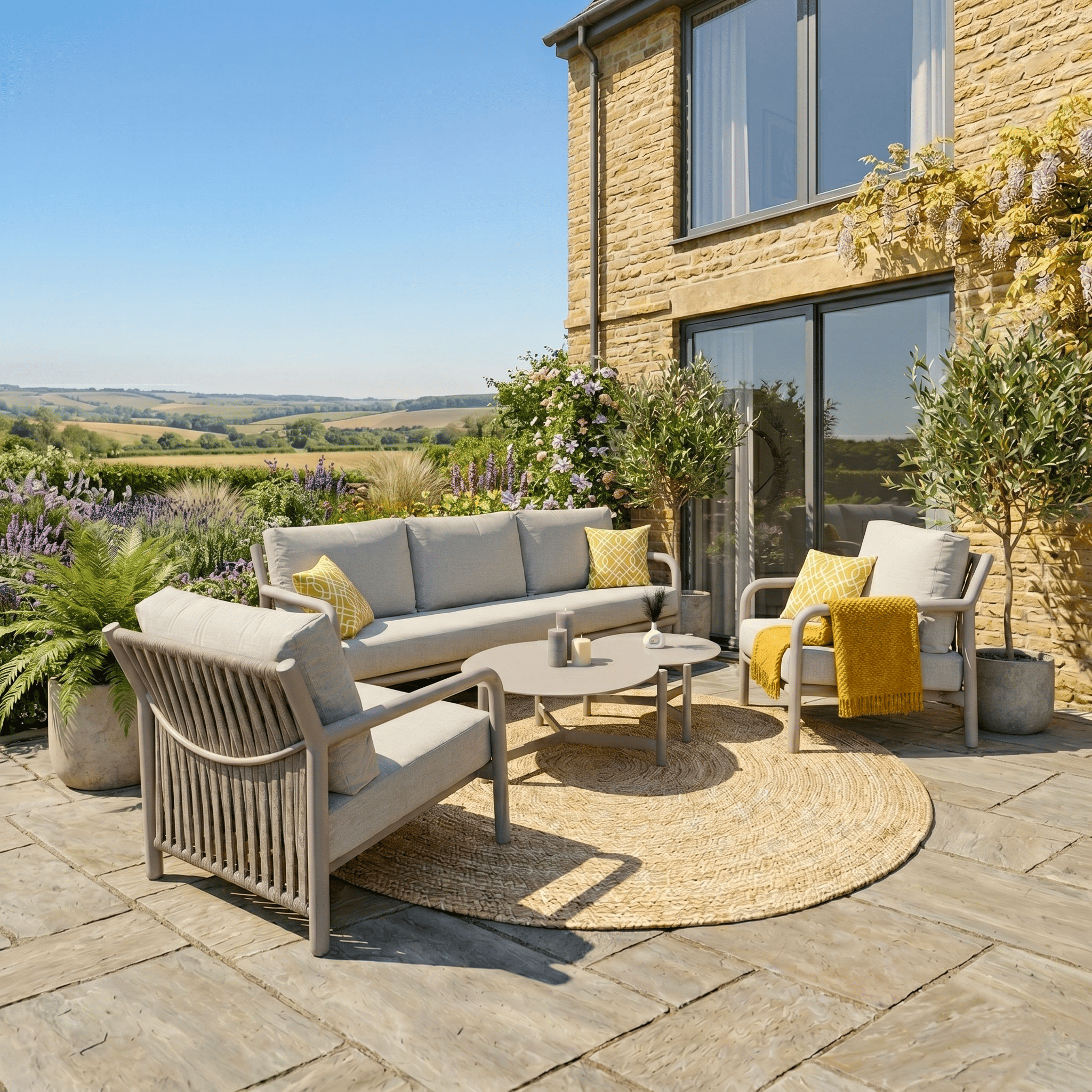 The MIAMI Sofa Lounge Set collection, design-led outdoor and garden living, combining bold form with refined detailing for a truly distinctive look. Built on a fully weather-resistant, powder-coated and rust free aluminium frame, the set offers exceptional durability with a lightweight, contemporary feel. Ideal for year-round outdoor use in British weather and with minimal maintenance.