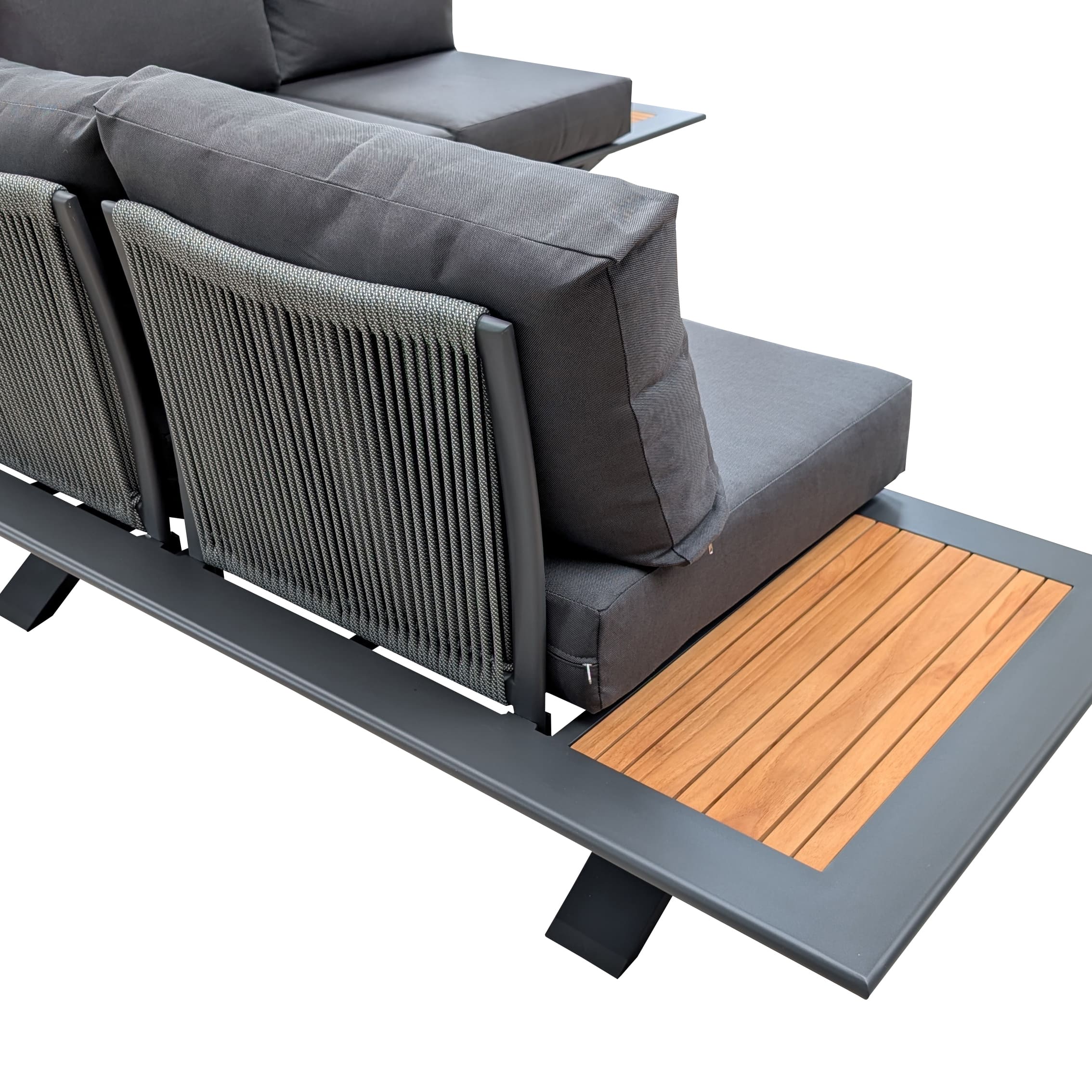 Rengard MONACO Aluminium Rope Modular Corner Sofa Set with Teak Coffee Table