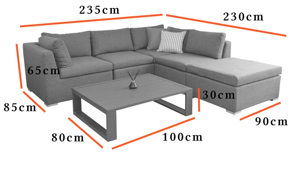 LAUREN corner sofa set blends indoor comfort with outdoor durability. Built with a rust-free powder-coated aluminium frame, it features weather-resistant, quick-dry fabric that’s easy to clean and maintain. The flexible modular design lets you rearrange the seating to suit your space, while the spacious aluminium coffee table provides the perfect spot for drinks, snacks, and relaxed outdoor entertaining.