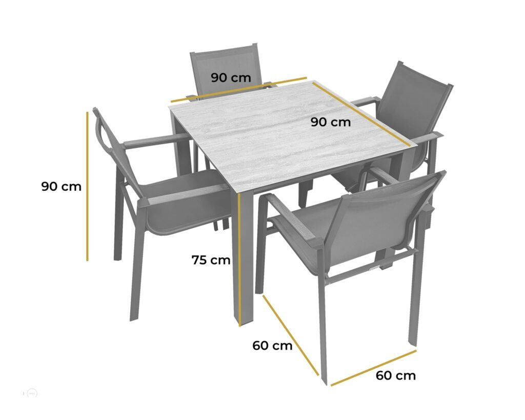 The RONA Dining Set brings a smart, refined edge to outdoor dining, combining long-lasting materials with a clean, contemporary profile. Its square dining table and four matching armchairs are built on a powder-coated aluminium frame in a sleek Anthracite Grey finish — lightweight, robust, and fully resistant to rust and challenging British weather. This keeps the set looking sharp year after year, with no maintenance fuss.