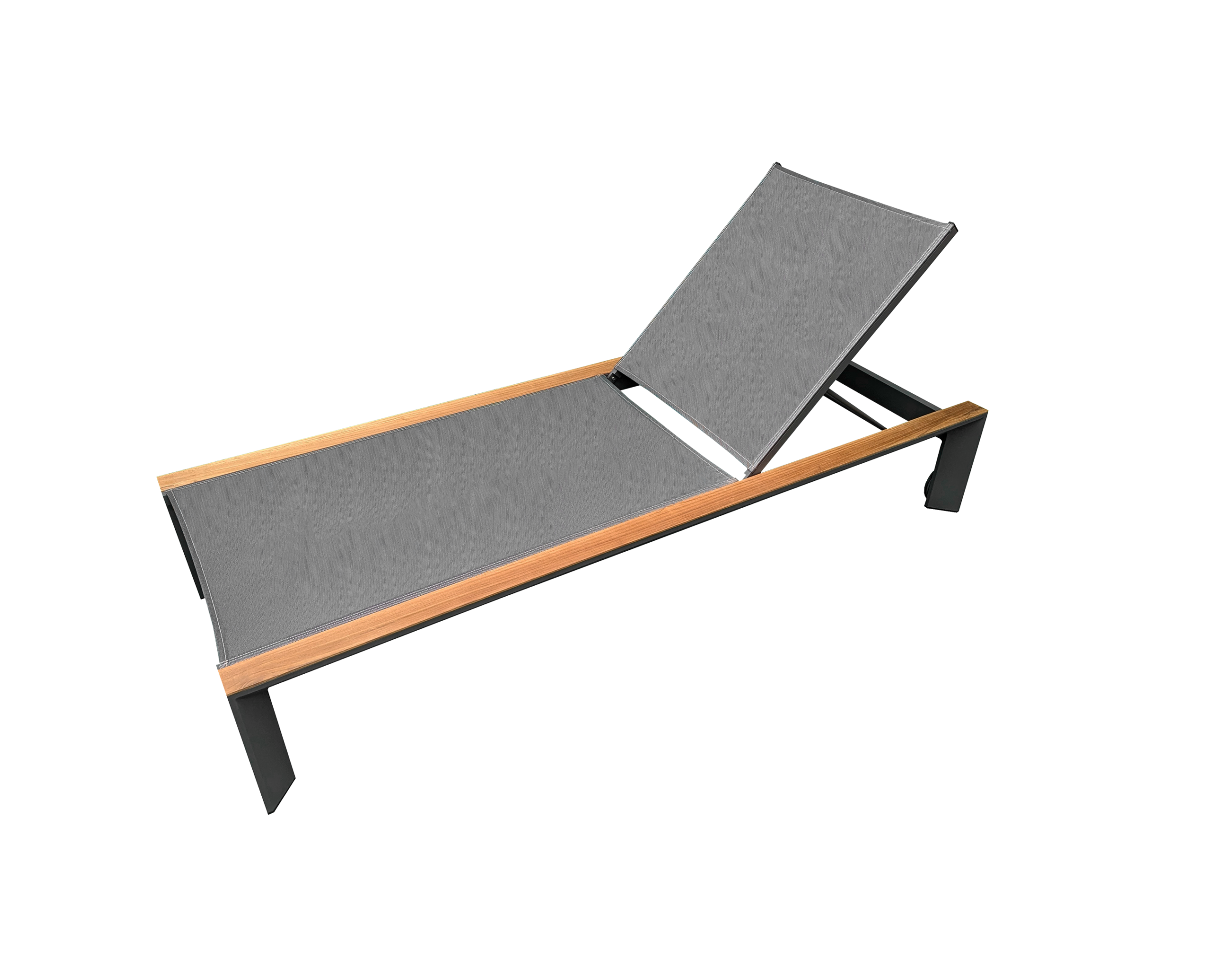Rengard HARRY Aluminium and Teak Sun Lounger with Wheels and Adjustable Incline