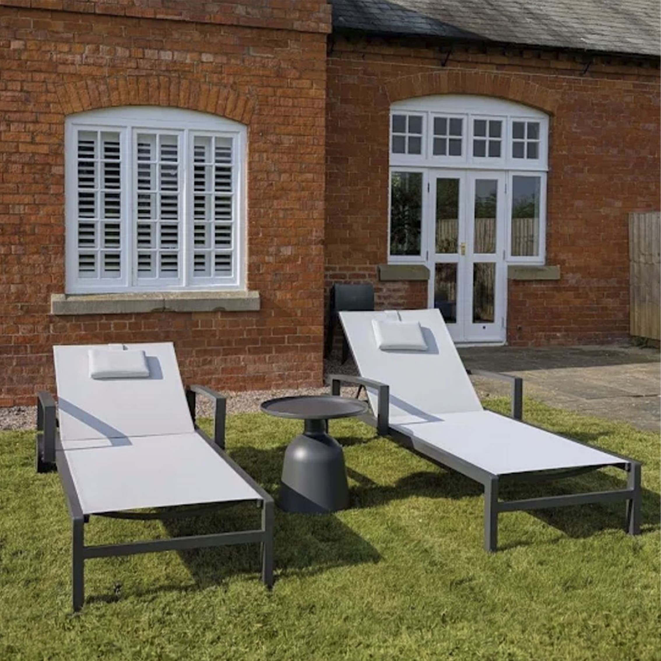 Built for both comfort and practicality, this contemporary sun lounger is designed to elevate outdoor relaxation. Its robust, powder-coated aluminium frame is rust-free and fully assembled, ensuring long-lasting durability without the need for flatpack construction. The breathable textilene fabric is weatherproof and flexes to support your body, providing all-day comfort in any conditions. Integrated armrests and a built-in headrest cushion enhance relaxation, making it ideal for extended lounging. Large rear wheels allow for effortless manoeuvrability, so you can easily follow the sun or reposition your setup. Adjustable leg caps provide stability on uneven surfaces, completing a design that balances convenience, comfort, and modern outdoor style.
