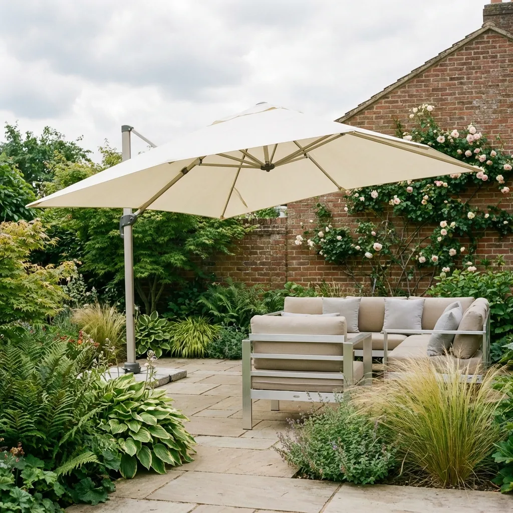 Different regions tend to prefer different styles. Cottage gardens in Cheshire often use centre pole designs. Larger modern patios in Shropshire usually choose cantilever models (Garden Parasol Shropshire: Stylish Shade Solutions for 2026). Urban gardens in Manchester and Birmingham often rely on tilting or rectangular parasols, where space is limited and light changes quickly. For more local inspiration, see Top Garden Parasols Birmingham for Patios & Small Gardens.